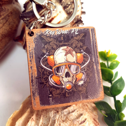 Skull Engraved Dive Wooden Fridge Magnet
