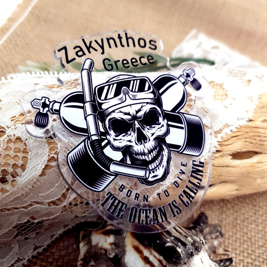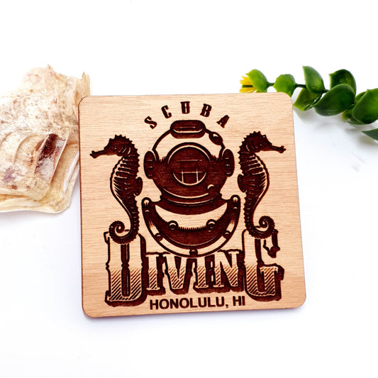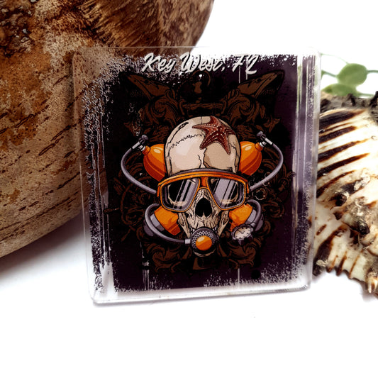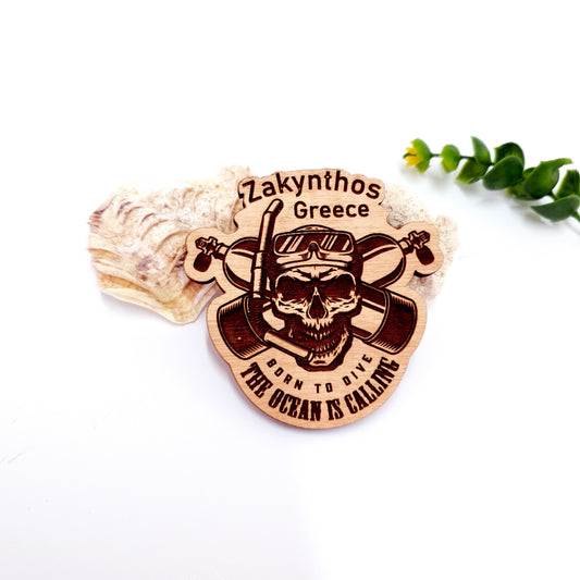 Skull Underwater Engraved Dive Wooden Fridge Magnet