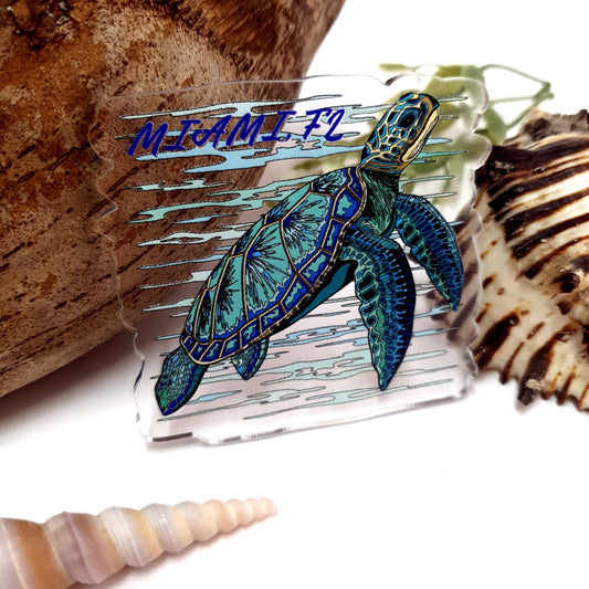 Watercolor Blue Turtle Acrylic Fridge Dive Magnet
