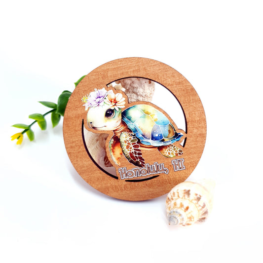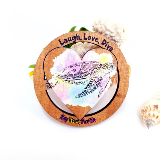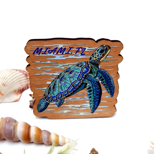 Watercolor Blue Turtle Wooden Fridge Dive Magnet